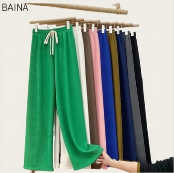 Pantalones casuales de verano para mujer, cintura alta, rectos, hasta el suelo, sueltos, drapeados, pierna ancha
