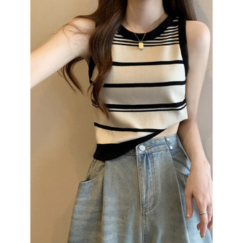 Vêtements d'extérieur d'été décontractés pour femmes Color-Block Striped Knitted Camisole Sleeveless Top Front Short Inner Layer