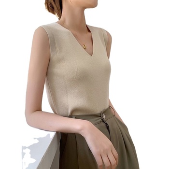Femmes à la mode glace soie haut printemps automne tricoté col en v sans manches Camisole gilet Style décontracté avant couche intérieure Blazer
