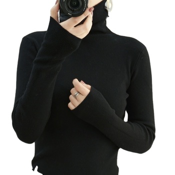 Automne hiver femmes mode pull à col haut Style coréen à manches courtes et longues coupe ajustée chemise de Base tricotée serrée