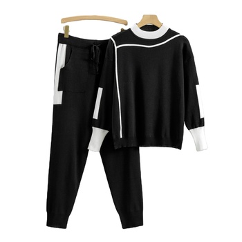 Artı boyutu zarif kadın sonbahar kış rahat spor örme iki parçalı Set moda kazak seti