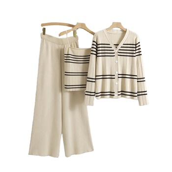 Yeni çizgili kaşkorse hırka üç parçalı Set zarif yönlü moda örme takım kadınlar için sonbahar
